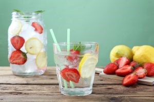 If you cannot develop a taste for kombucha or just don’t like the price of kombucha, try some herbal tea, either hot or on ice, with a touch of stevia. My favorite is Celestial Seasonings Red Rooibos and Vanilla flavor with a drizzle of maple syrup. Its delicious either hot or cold and has a sweet mellow flavor. Or try cutting up some fruit in a pitcher of spring water. The fruit adds a little bit of flavor without the sugar or calories. Cucumber and sliced limes are also quite tasty in water, and if you love the bubbles, drink sparkling spring water—one of my favorites. Sparkling mineral water also adds some great electrolytes and minerals as well.