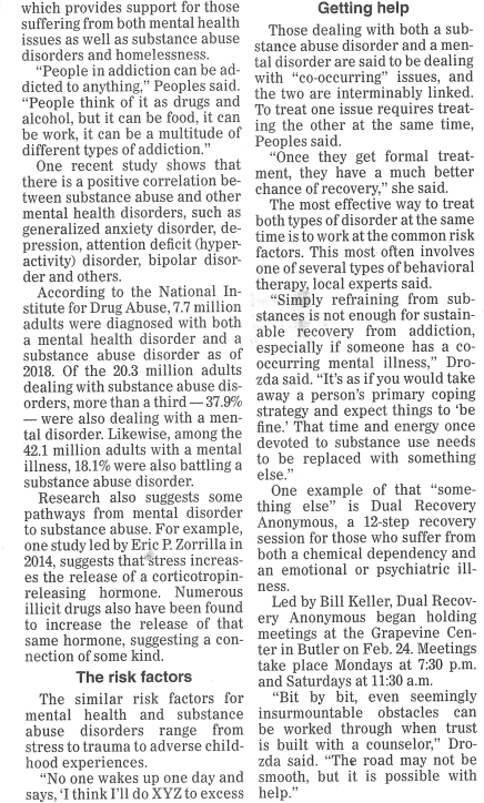 Please note that Grapevine Center has met with Butler County Police in the past, to foster better understanding of people with mental illnesses and how to deal with them in a way that does not lead to escalation.