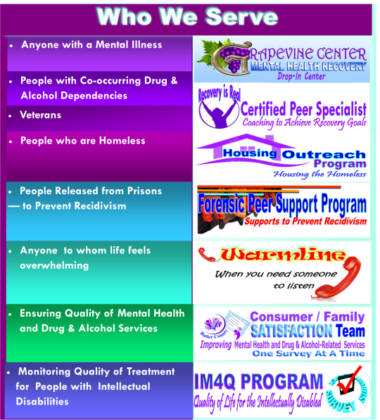 Grapevine Center has grown from a support group for consumers of Mental Health services, to a full-service, mainly Peer-run recovery center.