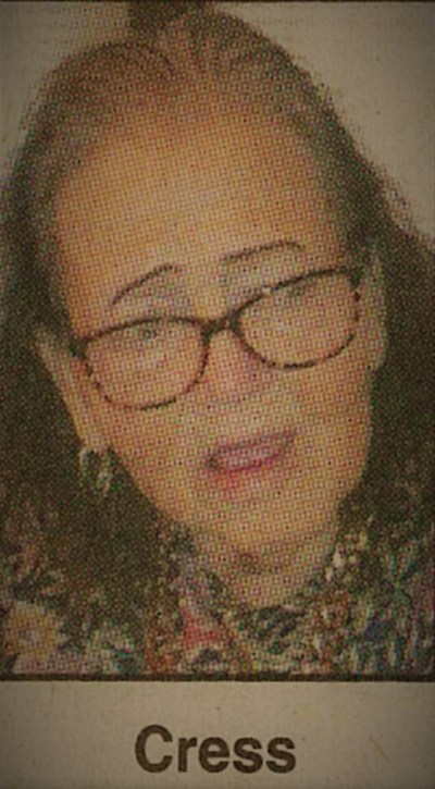 She is survived by her husband Donald E.Cress of Butler, her son Clifford George Jnr; her daughter Jessica Erdos of Butler; her brother Timothy Schulter of Butler; 10 Grandchildren and 13 Great-grandchildren.